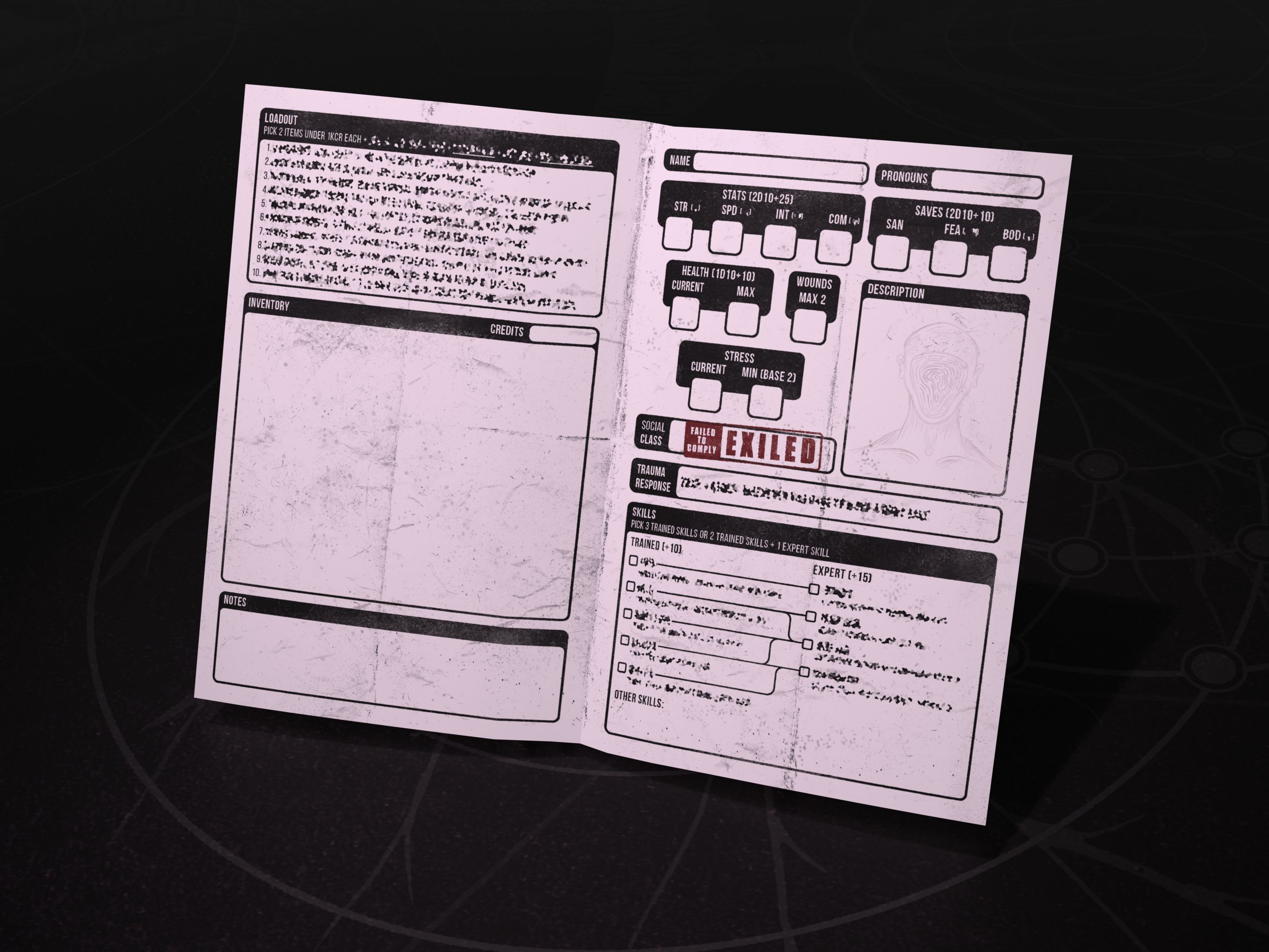 Hey hey, this is an update to let you know that the Faint Crawl dedicated class is now available! The Exile class is a weakened body that knows how to adapt and survive the harsh ruins of society. Utilize their survivalist and appraisal skills, alongside their unique jury-rigged loadout, to make the most of the salvage you find. Just.. don't push your frail body too much. This class is also designed to be used at any table you want! Are you up to the challenge to revoke your exile?